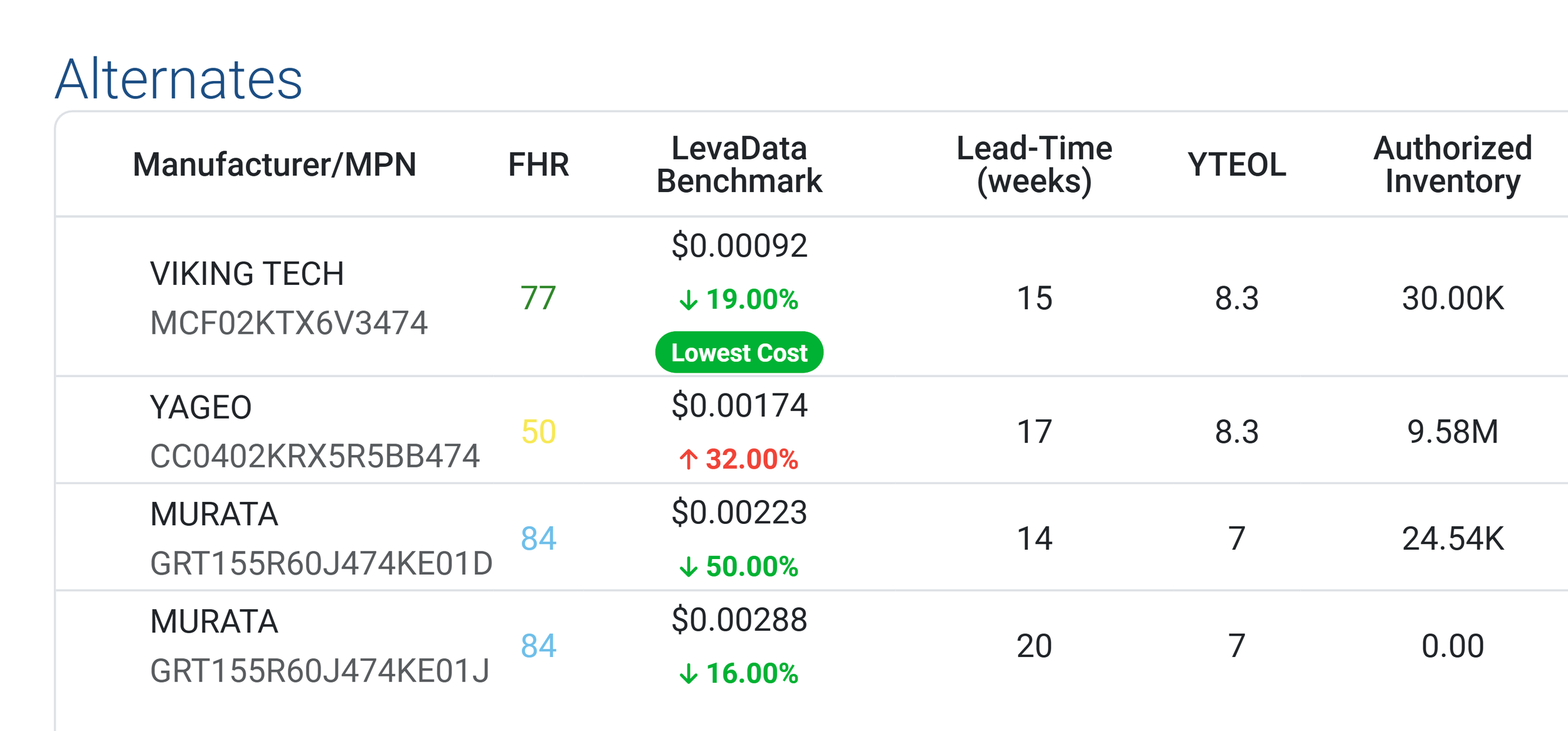 Financial health + YTEOL + lead time — keep you from chasing fragile or near-EOL parts.